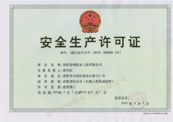 宏峰公司屬國家防水防腐保溫工程專業(yè)承包貳級資質(zhì)企業(yè),經(jīng)貴州省住房和城鄉(xiāng)建設(shè)廳考核合格
